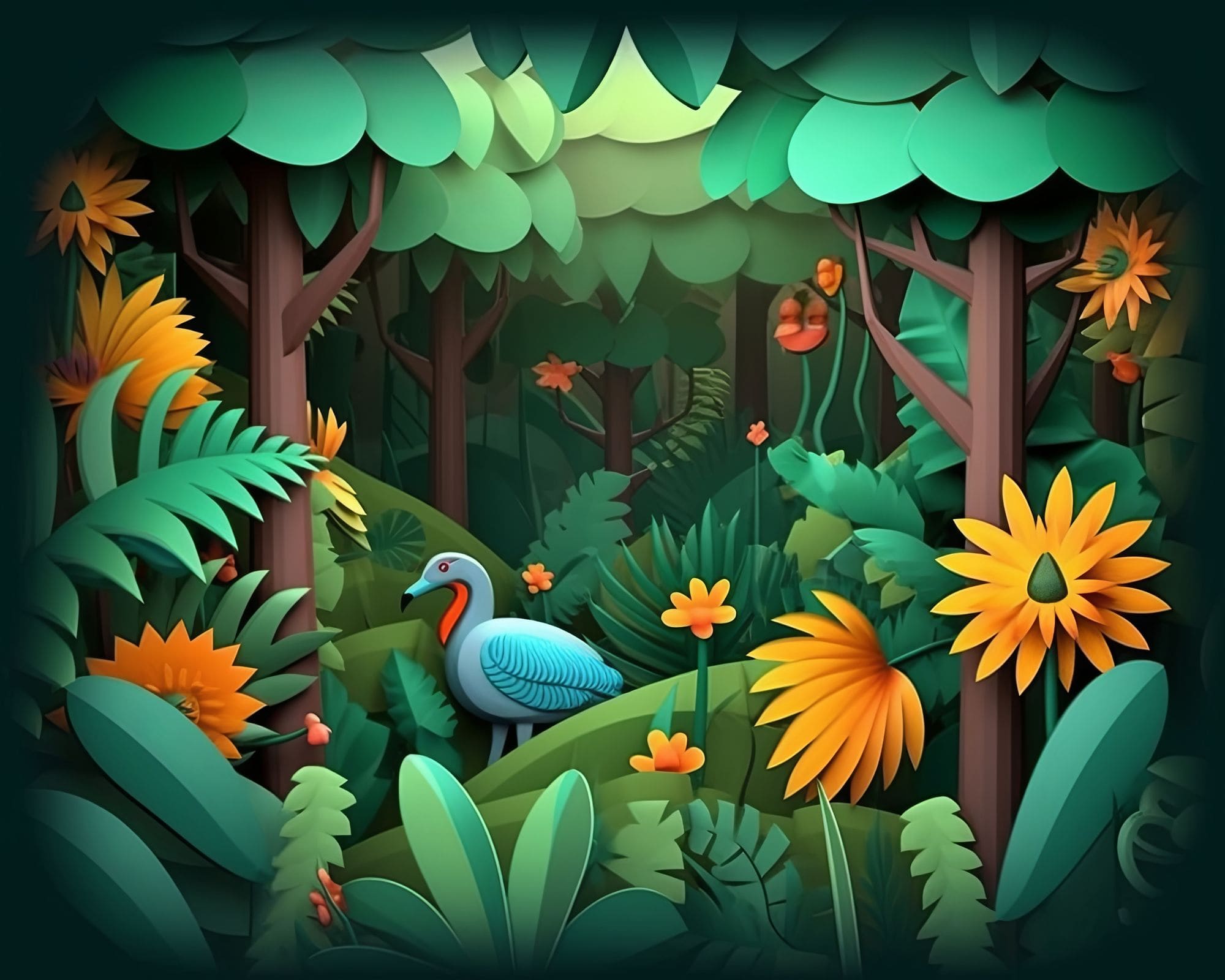 Immerse yourself in the mystical atmosphere of a tropical jungle, where every drop of dew sparkles, awakening the ancient secrets of nature. Discover exotic fruits and enchanting creatures to experience an unforgettable riot of sounds and colors...